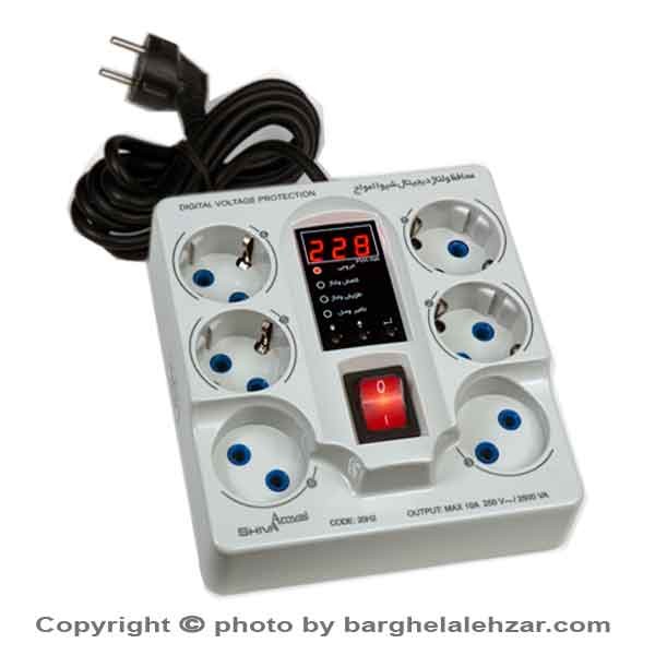 محافظ ولتاژ ۶ پریز دیجیتال مدل 20H2 شیوا امواج دستگاهی مناسب برای حفاظت وسایل خانگی در برابر افزایش ، کاهش و نوسانات ولتاژ برق می باشد.